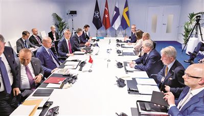 6月28日,北约秘书长斯托尔滕贝格与土耳其、瑞典、芬兰等国领导人讨论瑞芬两国“入约”问题。
