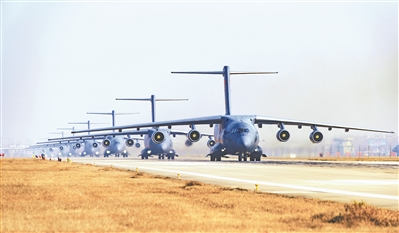 展望世界风云变幻,习主席发出“把人民空军全面建成世界一流空军”的伟大号召,人民空军坚决响应统帅号令,战略转型由量变积累向质变跨越迈进。以运-20大型运输机列装为标志,我军空中战略投送力量奋飞前行,印着“八一”军徽的运-20,飞越大洋、飞越高山,飞越时区、飞越经纬,出现在喀布尔国际机场、努库阿洛法国际机场……