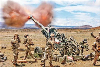 美国陆军士兵在夏威夷进行榴弹炮射击训练。