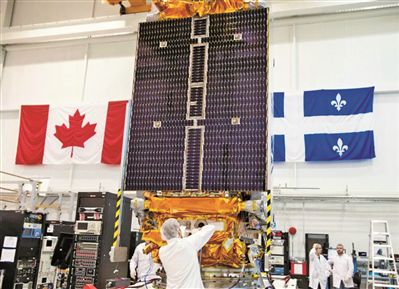 加拿大技术人员对国产雷达卫星进行检查。