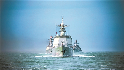 海军太原舰展开编队训练。李宇摄