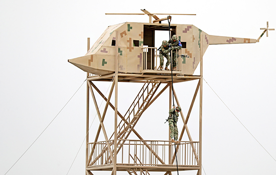 中国参赛队员实施索降。罗兴仓摄