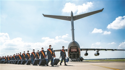 7月31日,新录取的飞行学员走下运-20飞机,前往空军航空大学报到。高思远摄