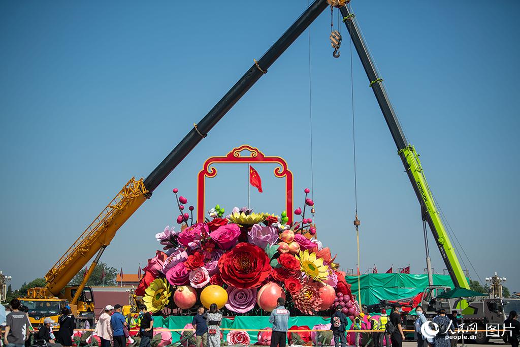 天安门广场搭建国庆大花篮