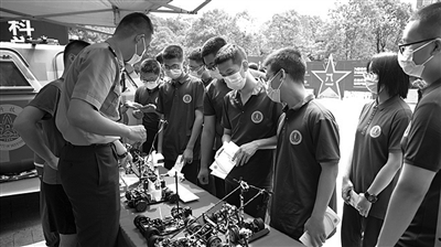 “走进国防科技大学的他们,心中大多埋着科技报国的理想种子。以科技迎新的形式组织‘开学第一课’,就是希望在入校之初就为这粒种子洒去第一缕阳光。”为了让新学员对所学专业有更直观、更真切的感受,新训大队联动各专业学院,在各个迎新点都设置了专业成果展示区。