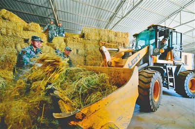 帮助牧民搬运饲草料。