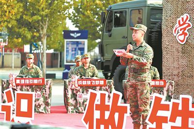 正在野外驻训的第76集团军某防空旅,利用“快板书”等官兵喜闻乐见的方式宣传党的二十大精神。崔获阳摄