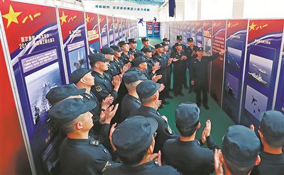 海军某护卫舰支队组织官兵参观“向海图强春潮涌”主题展览,感受强军这10年取得的非凡成就。王光杰摄