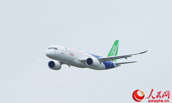 我国首个按照国际民航规章自行研制、具有自主知识产权的大型喷气式民用飞机C919首次亮相中国航展,并进行飞行表演。唐宋摄