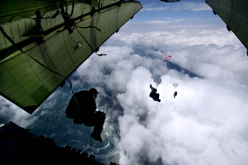 15名空降兵在4999米高空实施伞降