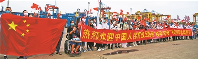 和平方舟医院船抵达印尼首都雅加达时,受到热烈欢迎。