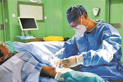 和平方舟医院船上的医生,正在为一名患者治疗。