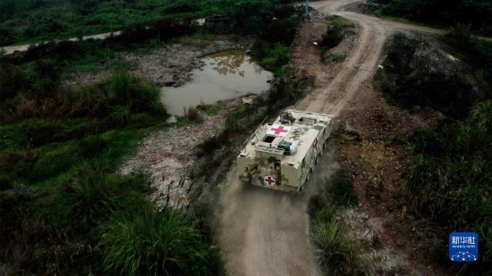 11月14日,在“卫勤力量-2022A1”基地化训练中,装甲救护组前往连集伤点前接“伤员”(视频截图)。新华社发(蒋松洋 摄)