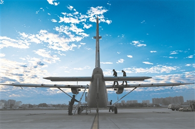 机务官兵做飞行准备。 李卓骏摄