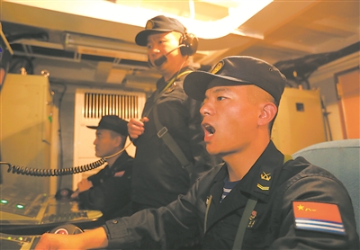 “发现‘敌’空中目标向我近飞!”编队抵达训练海域不久,就接到“敌情”通报。伴着急促的警报声,各舰迅速组成对空防御队形,准备抗击来袭目标。