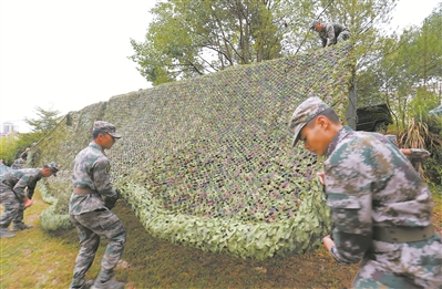 图①:近日,广东省紫金县人武部组织基干民兵进行伪装防护课目训练。甘志辉摄