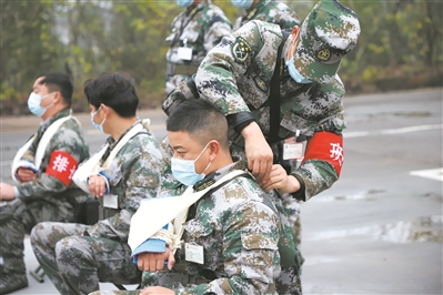 图②:12月上旬,江西省上饶市广丰区人武部组织民兵进行卫生与救护课目训练。黄彬彬摄