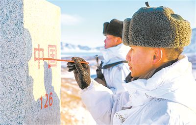 经过6个多小时艰难跋涉,官兵终于到达此次巡逻的目的地。在为界碑描红后,他们拿出国旗,在界碑旁举行了庄严的宣誓仪式。天寒地冻,热血沸腾,官兵铿锵激昂的誓言响彻风雪边关。(杨云龙、肖国涛、韩强摄影报道)