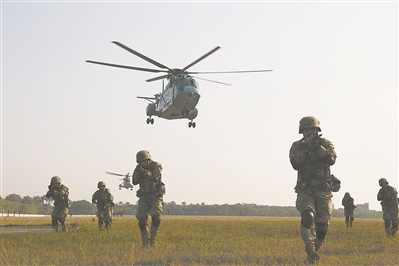 连日来,海军陆战队某旅开展陆空协同训练,检验官兵训练质效。