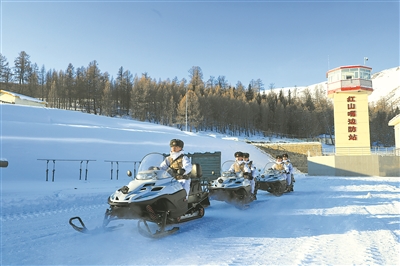 完成巡逻 边防战士用“冰墩墩”表达对祖国的爱