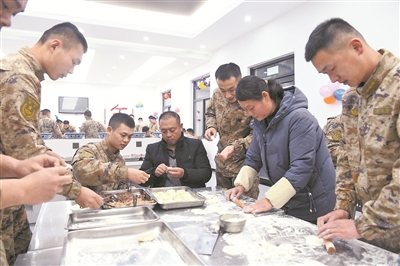 上图:肖思远父母与“杨根思连”官兵一同包饺子。季 鹏摄