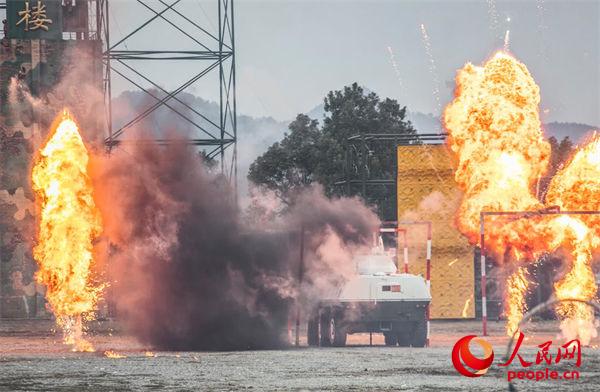 官兵通过“染毒地带”。吴哲明摄