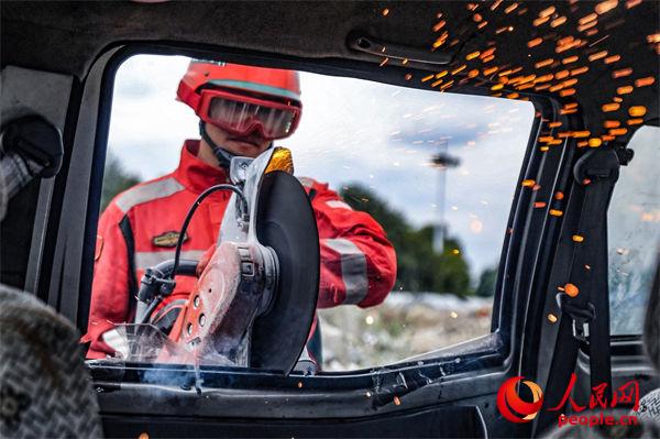 官兵正在进行破拆工具操作。归王彬摄