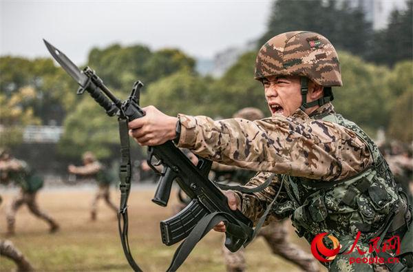 官兵进行刺杀训练。吴哲明摄