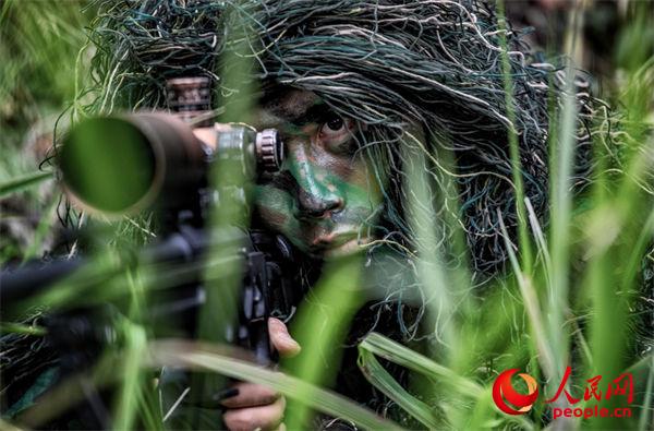 捕歼战斗演练中,狙击手占领制高点。吴哲明摄
