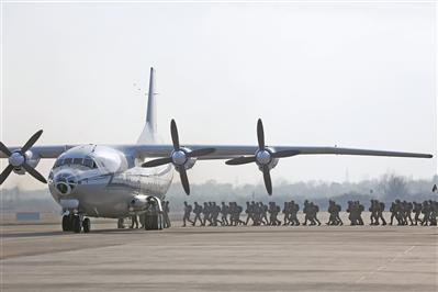 1月上旬,空降兵某部组织新兵跳伞训练。