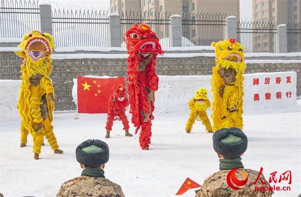 人民网北京2月4日电 喜庆的锣鼓敲起来,吉祥的狮子舞起来。近日,驻守在天山北麓的武警新疆总队某机动支队开展了丰富多彩的军营特色文化活动,喜迎元宵佳节。