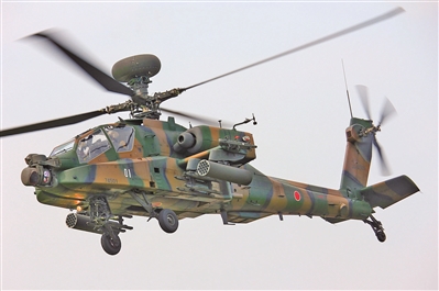 日本自卫队装备的美制AH-64D“长弓阿帕奇”攻击直升机。