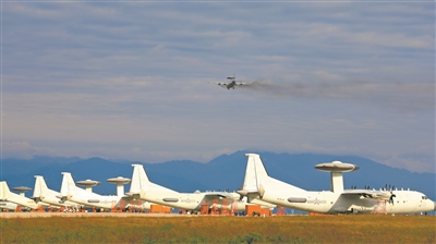 战机掠过停机坪。高宏伟摄