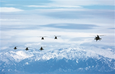近日,新疆军区某旅组织飞行训练。