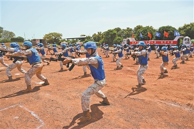 我维和官兵为来宾展示刺杀操。李飞宇摄