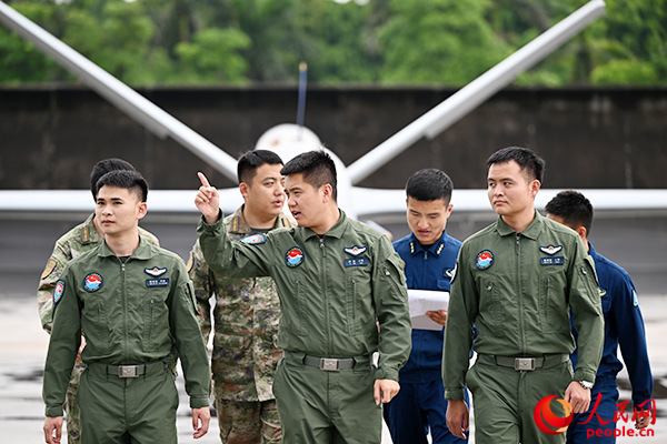 李阳与各保障专业人员进行飞行后总结。余红春摄