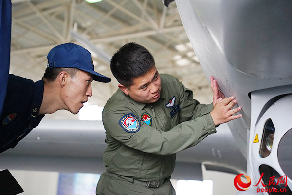 李阳为机务人员共同研究装备。刘载誉摄