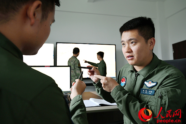 李阳为新飞行员讲解飞机性能。余红春摄