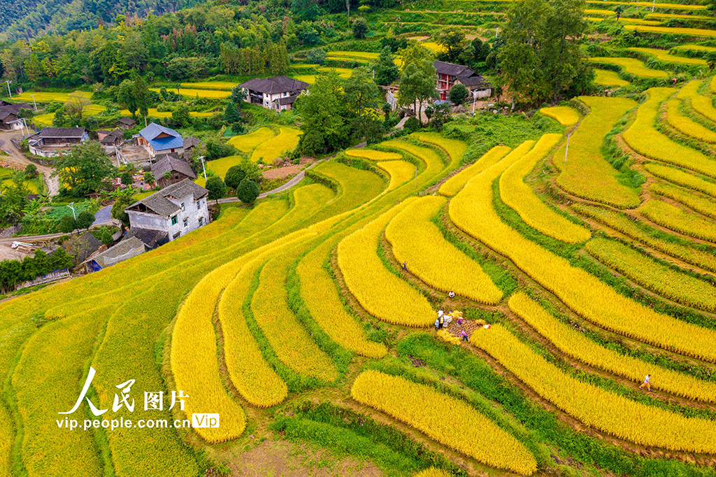 湖南东安:梯田水稻开镰