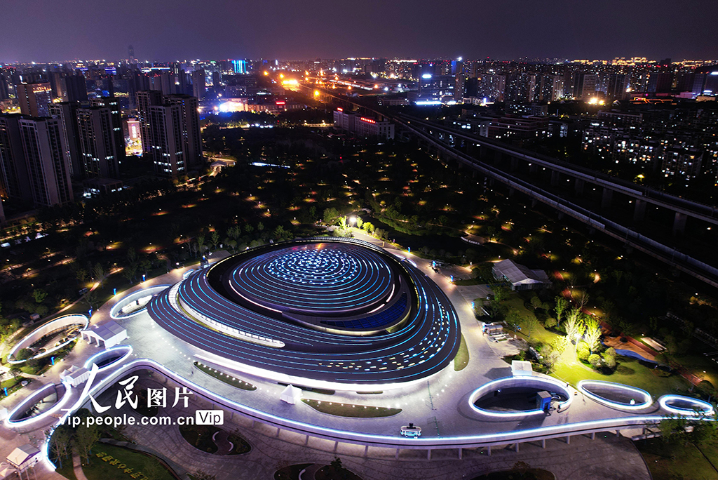 浙江杭州:亚运电竞中心夜景绚丽多彩