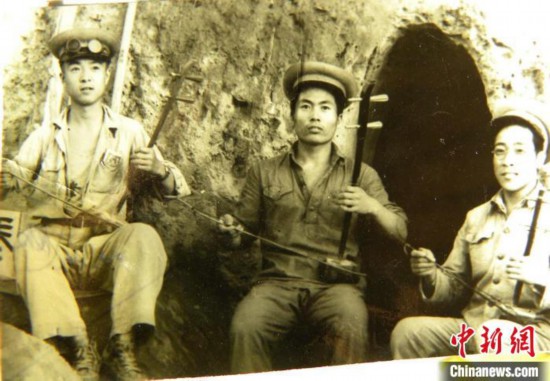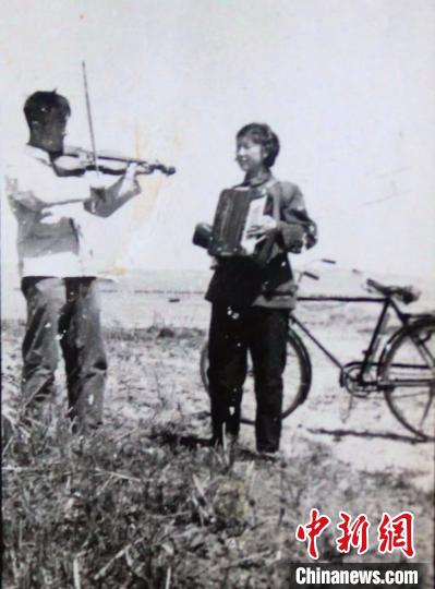 新婚之后,闫欣秋与闫秀珍一起合奏(翻拍老照片)。杨俊钦摄