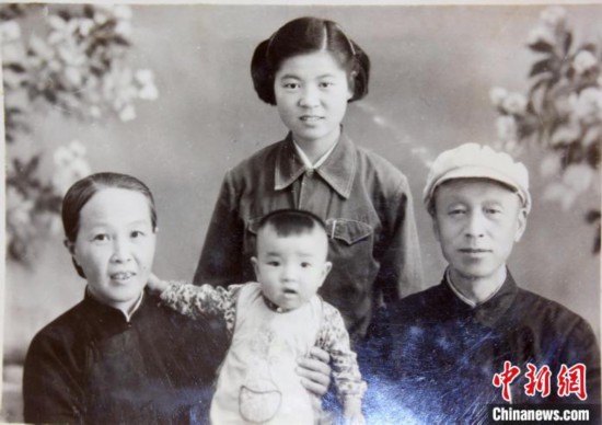 到新疆前,闫秀珍与闫欣秋家人合影。(翻拍老照片)。杨俊钦摄