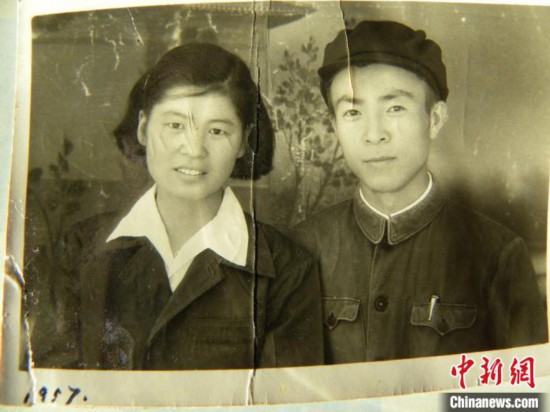 1957年,闫欣秋夫妻合影(翻拍老照片)。杨俊钦摄