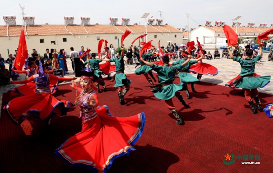 内蒙古乌兰察布市乌兰牧骑民兵连走进农牧民中间,以表演节目的形式开展国防教育。