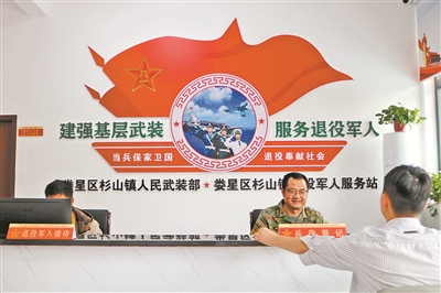 为提升办公质效,该市对乡镇(街道)武装部和退役军人服务站工作人员进行整合,明确乡镇(街道)武装部部长以同级党委委员身份分管退役军人服务站工作,符合条件的退役军人服务站站长,通过专职人民武装干部资格认证考核后,可担任或兼任乡镇(街道)武装部副部长,村(社区)党组织负责人任退役军人服务站站长,民兵连(排)长任干事。合编、合力、合心,使“一部一站”真正实现成一家人、说一家话、干一家事。
