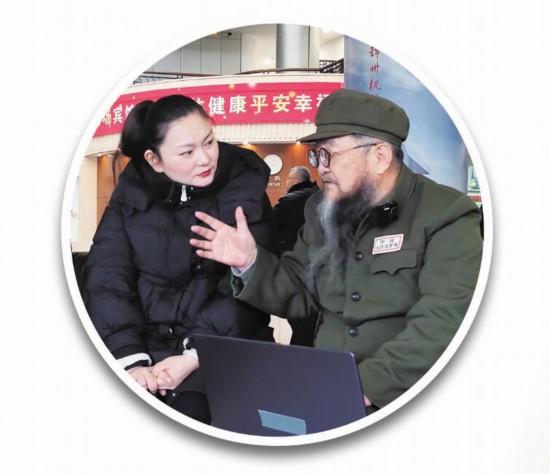 图②:11月24日,全国“最美拥军人物”孙嘉怿(左)陪同烈属代表前往沈阳参加第十批在韩中国人民志愿军烈士遗骸回国迎接仪式,听烈属代表讲述英烈故事。由作者提供