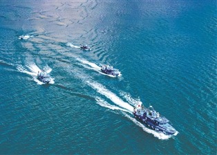 阿里军分区某巡逻艇中队进行编队航行训练。索延客摄