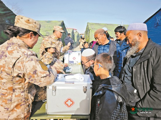 12月21日,第940医院医疗队赴积石山县刘集乡安置点,为受灾群众开展医疗巡诊等服务。郭泽天摄