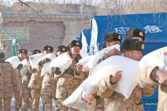 12月21日,西部战区前进指挥所召开临时党委会议,现地对接地方支援需求,调整兵力部署和资源投向,指挥部队加紧向受灾严重的点位转运帐篷、单人床、取暖炉等物资,帮助受灾群众尽快恢复生产生活秩序。