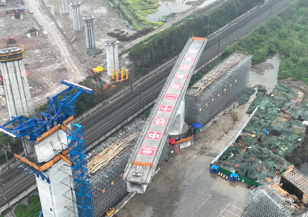 沪渝蓉高铁武宜段跨汉丹铁路特大桥成功转体